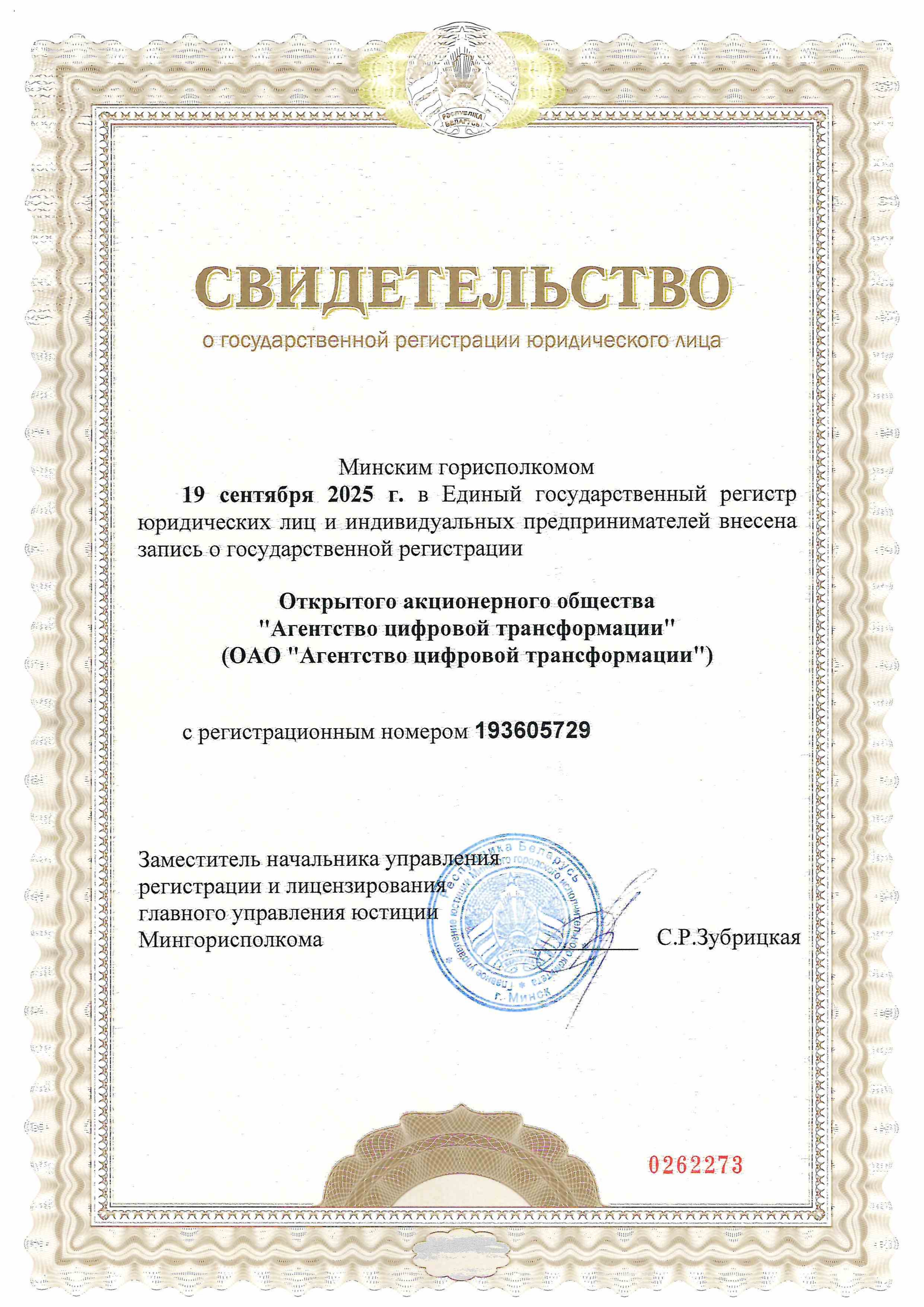 Свидетельство о государственной регистрации юридического лица